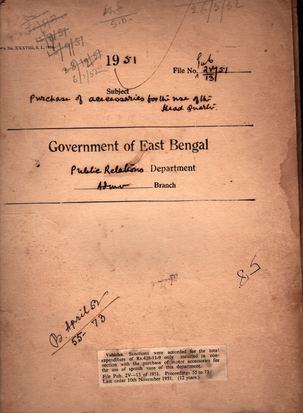 | Rack No. 18, Bundle No. 04, SI No. 304 Grant of leave to Driver of D.M. Units. | Rack No. 18, Bundle No. 04, SI No. 305 Grant of the allowance to Panchu Sheikh, a peon of the D.M. unit, Jessore for over staying at Dacca. | Rack No. 18, Bundle No. 04, SI No. 306 Representation made by him Mvi. Mr. Chowdhury Shamsur to him the up to date account of rent realized from his pay live by the Accounts Branch. | Rack No. 18, Bundle No. 04, SI No. 307 Purchase of motor accessories. | Rack No. 18, Bundle No. 04, SI No. 308 Increment of pay of Md. Mansur Ali, a record supplier of this Department. | Rack No. 18, Bundle No. 04, SI No. 309 Revision of pay scales of non-gazetted employee of East Bengal govt. | Rack No. 18, Bundle No. 04, SI No. 310 Absorption of temporary clerk Mvi. Abdul Hossain working in D.P, O's office. |