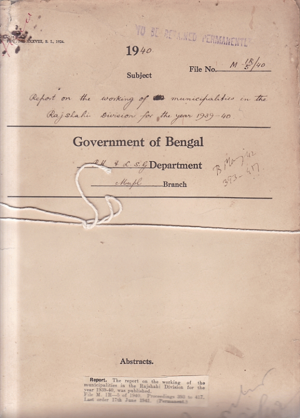 Report on the working of the Municipality in the RaJshahi Division for the year 1939-40