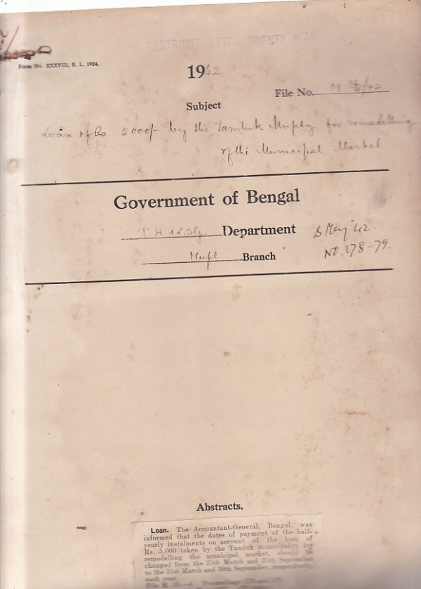 Loan of Rs. 5000/- by the Tamluk Municipalitry for remodeling of the Municipal Market.