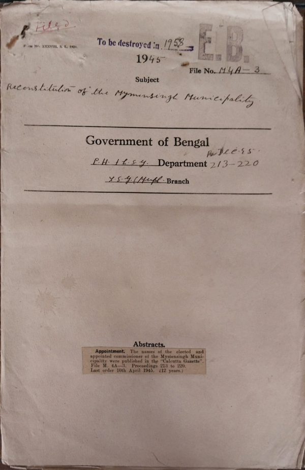 Reconstitution of the Mymensingh Municipality.
