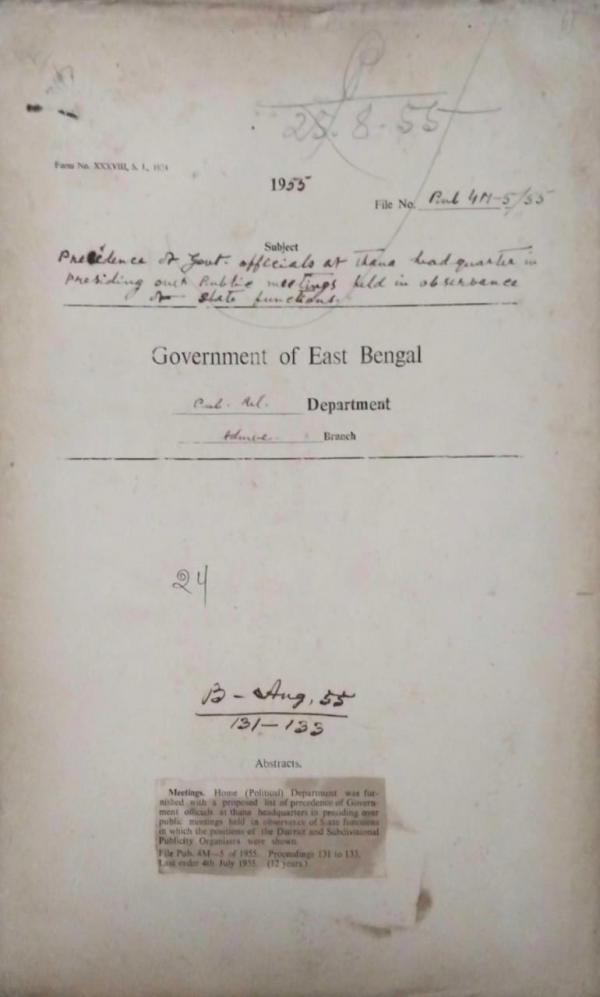 | Rack No. 18, Bundle No. 12, SI No. 778 Complaint against Mvi. S.R. Ismail ,operator of the D.M. Unit, Chittagong. | Rack No. 18, Bundle No. 12, SI No. 779 Indent for stationery for 1954-55. | Rack No. 18, Bundle No. 12, SI No. 780 Preparation of slides of Censor certificate. | Rack No. 18, Bundle No. 12, SI No. 781 Presidency of govt. officials at thana headquarter in presiding over public meetings held in observance of state function. | Rack No. 18, Bundle No. 12, SI No. 782 Reservation of vacancies in the posts of D.P. os+ S.D.pub. for civil supplies retrenched personnel. | Rack No. 18, Bundle No. 12, SI No. 783 Prayer from Mvi. Md. Muidul Haque, operator D.M. Unit, Pabna for transferred him to Bogra. | Rack No. 18, Bundle No. 12, SI No. 784 Delay in the Submission of pension papers. |