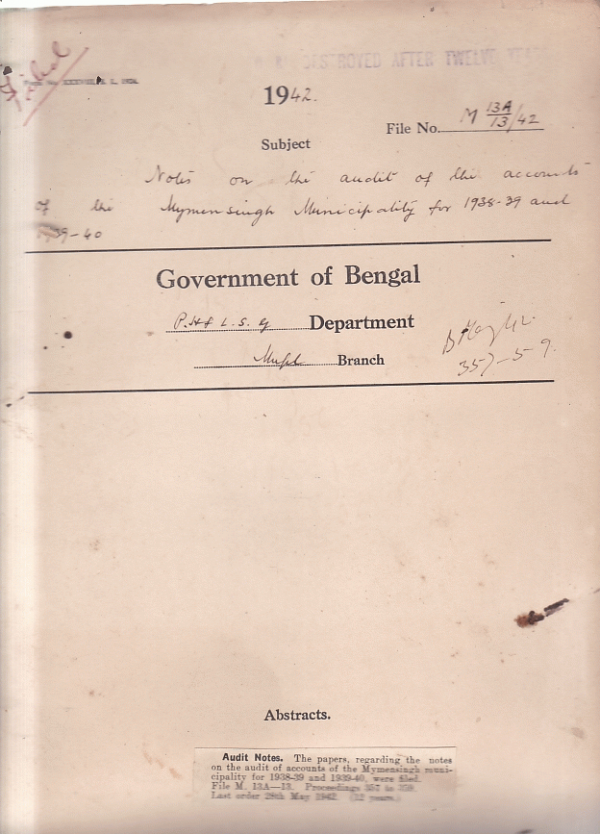 Notes on the audit of the acccounts of the Mymensingh Municipality for 1938-39 and 1939-40.