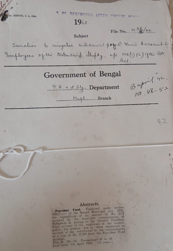 Sanction to irregular withdrawal from P.F. Account of Employees of the Nabadwip Municipality us 104 (i) (ii) of the B.M. Act.