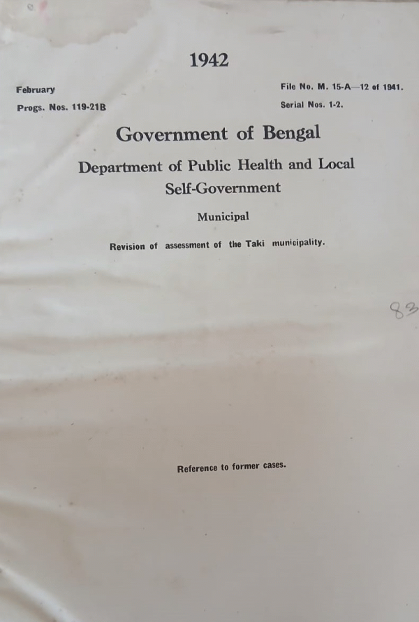 | Rack No. 13, Bundle No. 23, Sl No. 1580 Removal of disqualification of Babu Indu Bhusan Das, a Candidate for election as Commissioner of the Bajitpur Municipality. | Rack No. 13, Bundle No. 23, Sl No. 1581 Revision of forms regarding Omission of Calumn 14 about Municipal expenditure on Police establishment in form No. III. | Rack No. 13, Bundle No. 23, Sl No. 1582 Sanction to irregular withdrawal from P.F. Account of Employees of the Nabadwip Municipality us 104 (i) (ii) of the B.M. Act. | Rack No. 13, Bundle No. 23, Sl No. 1583 Revision of assessment of the Taki Municipality. | Rack No. 13, Bundle No. 23, Sl No. 1584 Note of audit of the accounts of the Howrah Municipality for the year 1937-38. | Rack No. 13, Bundle No. 23, Sl No. 1585 Sanction to Contribution of Rs. 50/- by the Bhadresswar Municipality towards the maintenance of Serampur Sub divisional Tuberculosis Association. | Rack No. 13, Bundle No. 23, Sl No. 1586 Amendment of Rule 5 of the P.F. Rules under the Bengal Municipal Act, 1932 |
