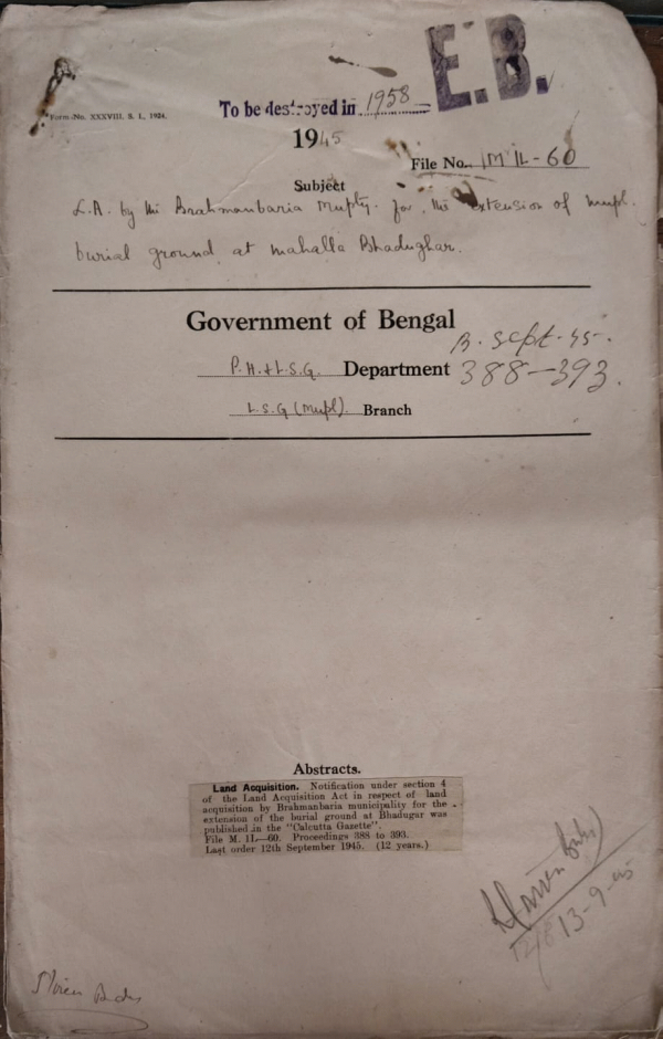 L.A. by the Brahmanbaria Municipality for the extension of Municipal burial ground at Mahalla Bhadughar.