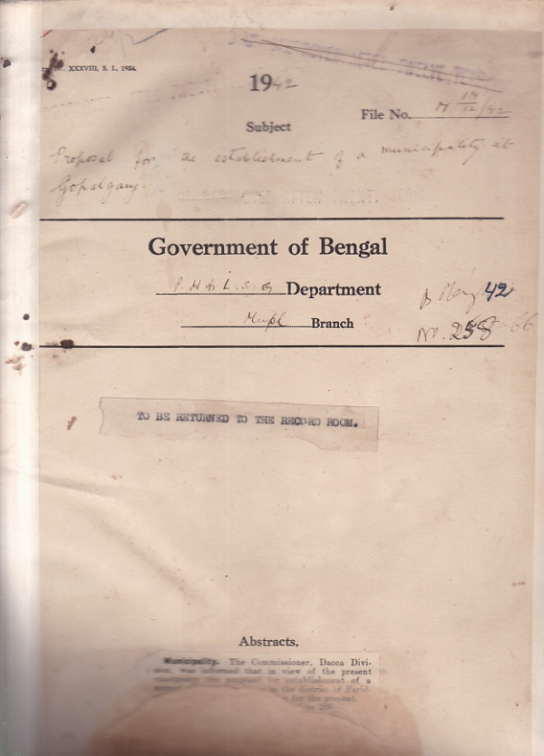 Proposal for the establishment of a Municipality Gopalganj.