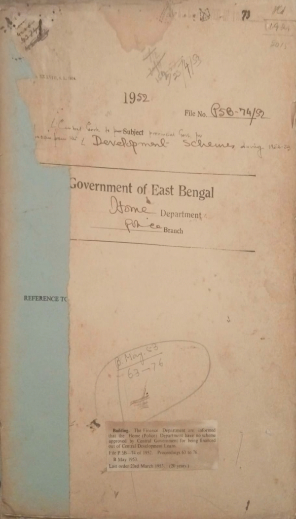| Rack No. 25, Bundle No. 132, SI No. 12,180 Police escort required by the Census Superintendent East Pakistan, Dacca , on pay day. | Rack No. 25, Bundle No. 132, SI No. 12,181 Payment of Charges on account of armoires course. | Rack No. 25, Bundle No. 132, SI No. 12,182 Proposal for the Sanction of guards for the Security of cash guard at the home department Dacca as a permanent measure. | Rack No. 25, Bundle No. 132, SI No. 12,183 Classification of Schemes assignment of Priorities to Schemes. | Rack No. 25, Bundle No. 132, SI No. 12,184 Acquisition of 1.71 acres land for rifle range at Magura Jessore. | Rack No. 25, Bundle No. 132, SI No. 12,185 Proposal for the retention of the staff for their offices as a permanent measure is dropped. | Rack No. 25, Bundle No. 132, SI No. 12,186 Installation of electric fans in the P.W.D. building no. 48 occupied by Q.M. Inspector Mir Akbar Khan of the E.P.R. at Peelkhana, Dacca. |
