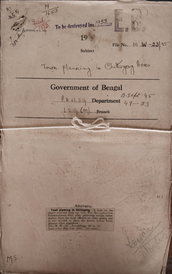 | Rack No. 13, Bundle No. 30, Sl No. 2053 Appointment of a Head Clerk and Accountant f the Berhampore Municipality. | Rack No. 13, Bundle No. 30, Sl No. 2054 Proposed extension of the term of office of the commissioner of the Kumarkhali Municipality of the B.M. Act, 1932. | Rack No. 13, Bundle No. 30, Sl No. 2055 Proposal for extension of the term of office of the commissioner of the Khulna Municipality. | Rack No. 13, Bundle No. 30, Sl No. 2056 Town Planning in Chittagong Area. | Rack No. 13, Bundle No. 30, Sl No. 2057 L.A. by the Nabadwip Municipality for a park. | Rack No. 13, Bundle No. 30, Sl No. 2058 L.A. by the Kishoreganj Municipality for a trenching ground, Public burial ground and an approach road there to at mouza Kishoreganj. | Rack No. 13, Bundle No. 30, Sl No. 2059 L.A. by the Dacca Municipality for widening the Kazimuddin Siddique Lane. |
