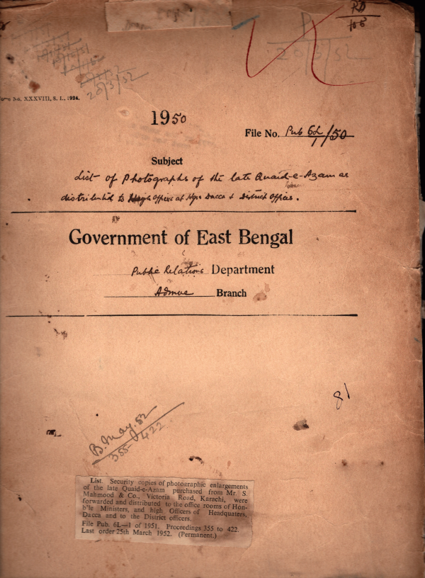 | Rack No. 18, Bundle No. 05, SI No. 336 Representation from Mvi. Abu Jamal Shamul Alam Promotion. | Rack No. 18, Bundle No. 05, SI No. 337 Refund of T.A. and D.A. for the Journey performed in the Govt. Chartered Steamer "Kiwi'" | Rack No. 18, Bundle No. 05, SI No. 338 Purchase of projection lamps and photo cells. | Rack No. 18, Bundle No. 05, SI No. 339 List of photographic of the late Quaid- e-Azam as distributed to the officers at Head Quarters Dacca and District Officers. | Rack No. 18, Bundle No. 05, SI No. 340 Restriction of Expenditure in India Currency. | Rack No. 18, Bundle No. 05, SI No. 341 Instruction for submission receipt and transmission of certain class of partitions to the Governor General. | Rack No. 18, Bundle No. 05, SI No. 342 Purchase of Gramophones and Radio Set's for the use of the D.M. Unit. |