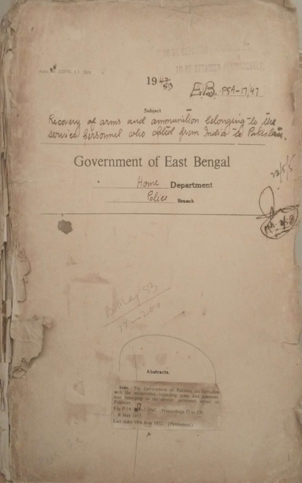 | Rack No. 25, Bundle No. 132, SI No. 12,206 Allotment of funds for the cost of type-writer for the Ansar directorate. | Rack No. 25, Bundle No. 132, SI No. 12,207 Extension of Police Hospital at Rangamati in the District of Chittagong Hill Tracts. | Rack No. 25, Bundle No. 132, SI No. 12,208 Name of the Subdivision in which the newly created Police Station Hakimpur, District Dinajpur has been included. | Rack No. 25, Bundle No. 132, SI No. 12,209 Recovery of arms and ammunition belonging to the service personnel opted to India to Pakistan. | Rack No. 25, Bundle No. 132, SI No. 12,210 Supply of cooked food to Police personnel during the visit of H.P.M. of Pakistan. | Rack No. 25, Bundle No. 132, SI No. 12,211 Retention of houses hired for the accommodation of 2A.S.Is of Dinajpur Sadar District. | Rack No. 25, Bundle No. 132, SI No. 12,212 Possession of a Prohibited bore revolver. |