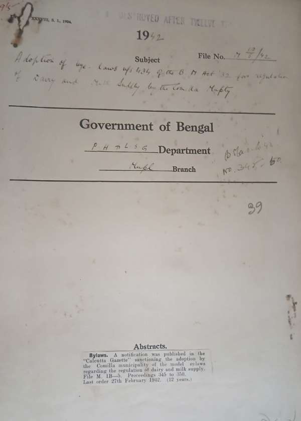 Adoption of bye-laws u/s 434 of the B.M. Act, 1932 for regulation of Dairy & Milk Supply by the Comilla Municipality.