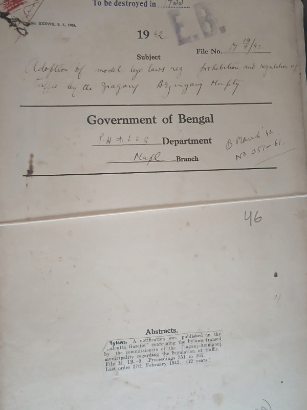 Adoption of model bye-laws prohibition and regulation of traffic by the Jiaganj Azimganj Municipality.
