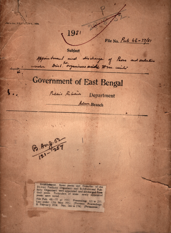 | Rack No. 18, Bundle No. 06, SI No. 388 Change of nomenclature of the major head" 63- B'' post war Reconstruction and Development Scheme. | Rack No. 18, Bundle No. 06, SI No. 389 Difficulties regarding coach Bihar enclaves. | Rack No. 18, Bundle No. 06, SI No. 390 Proposal for filling up the Post of Department Public Organization. | Rack No. 18, Bundle No. 06, SI No. 391 Dismissal of S.D. Pub. Mymensingh South from the post. | Rack No. 18, Bundle No. 06, SI No. 392 Purchase of batteries for the use of this Department. | Rack No. 18, Bundle No. 06, SI No. 393 Verification of Service of Sri. Profulla Rajan Sarker, operator of this Department. | Rack No. 18, Bundle No. 06, SI No. 394 Govt. of house building advance to Mvi. M.A. Samad, U.D. Assistant of this Department. |