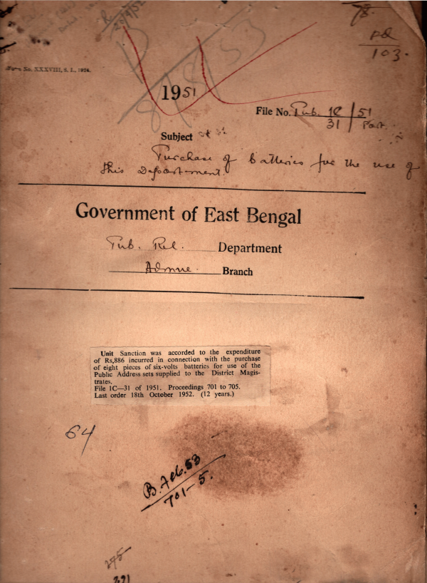 | Rack No. 18, Bundle No. 06, SI No. 389 Difficulties regarding coach Bihar enclaves. | Rack No. 18, Bundle No. 06, SI No. 390 Proposal for filling up the Post of Department Public Organization. | Rack No. 18, Bundle No. 06, SI No. 391 Dismissal of S.D. Pub. Mymensingh South from the post. | Rack No. 18, Bundle No. 06, SI No. 392 Purchase of batteries for the use of this Department. | Rack No. 18, Bundle No. 06, SI No. 393 Verification of Service of Sri. Profulla Rajan Sarker, operator of this Department. | Rack No. 18, Bundle No. 06, SI No. 394 Govt. of house building advance to Mvi. M.A. Samad, U.D. Assistant of this Department. | Rack No. 18, Bundle No. 06, SI No. 395 Purchase of P.A. equipments etc for D.M. Unit, Pabna. |