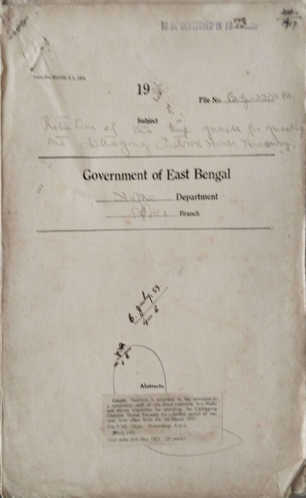 Retention of the temporary guards for guarding the Chittagong Customs House, Treasury.
