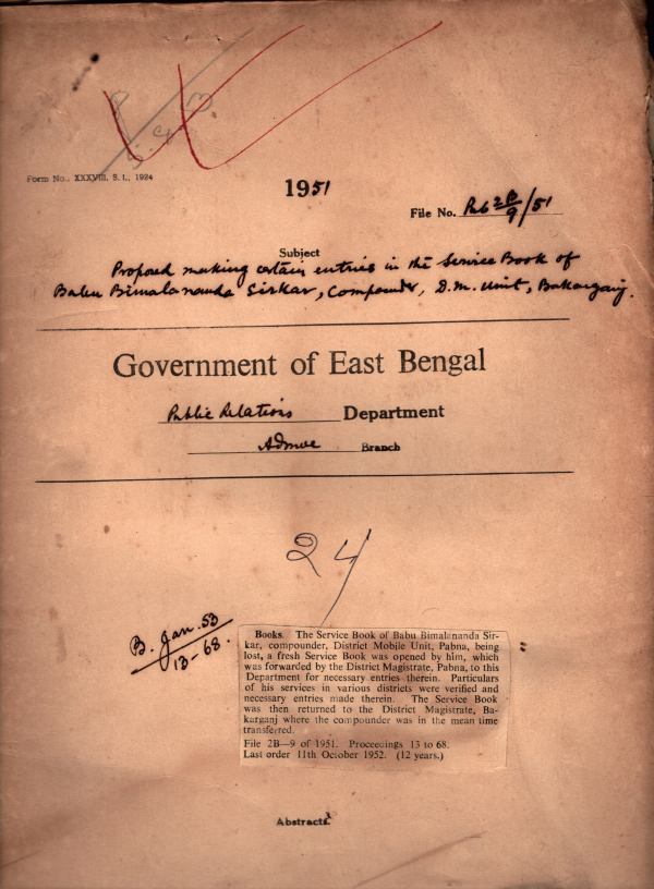 Verification of Service of Babu Bimalananda Sarkar a compounder under the D.M. Unit.