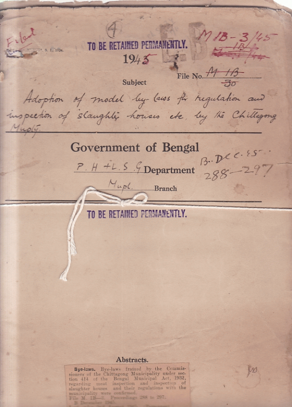 Adoption of Model bye-laws for regulation and inspection of slaughter houses etc. by the Chittagong Municipality.