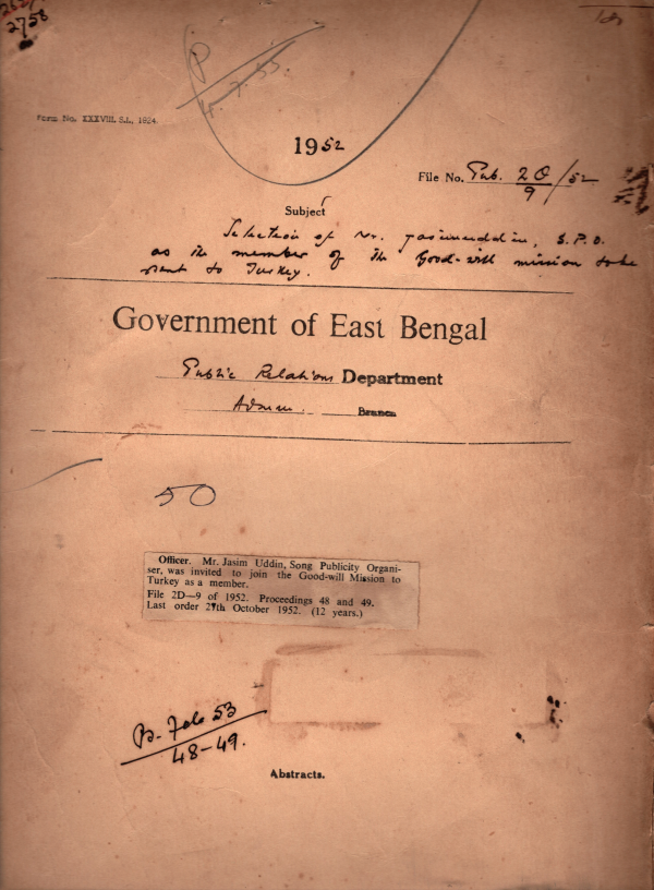 | Rack No. 18, Bundle No. 06, SI No. 430 Representation from the Md. Ismail, Assistant Operator, D,M. Unit, Rajshahi for his officiating Pay. | Rack No. 18, Bundle No. 06, SI No. 431 Present address of the D.P,Os and S.D. Pub. Os. | Rack No. 18, Bundle No. 06, SI No. 432 Public of Second edition of East Bengal Civil list. | Rack No. 18, Bundle No. 06, SI No. 433 Mr. Jasim Uddin Song Public Organizes, was invited to join the Good will mission to Turkey as a member. | Rack No. 18, Bundle No. 06, SI No. 434 Verification of antecedents of class IV employees. | Rack No. 18, Bundle No. 06, SI No. 435 Resolution of the Sub-divisional Muslim league council against Mvi. Khaleque Dad Choudhury, S.D. Pub. Organizer Netrokona. | Rack No. 18, Bundle No. 06, SI No. 436 Appointment to the upper Selection grade posts in the Secretariat. |