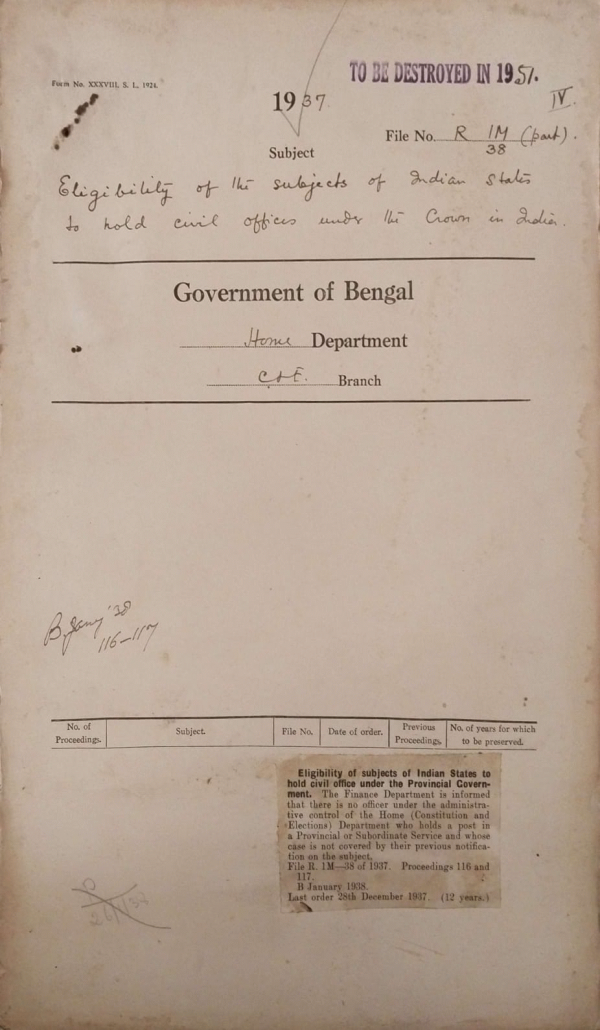 Eligibility of Subjects of Indian States to hold civil office under the provincial Government.
