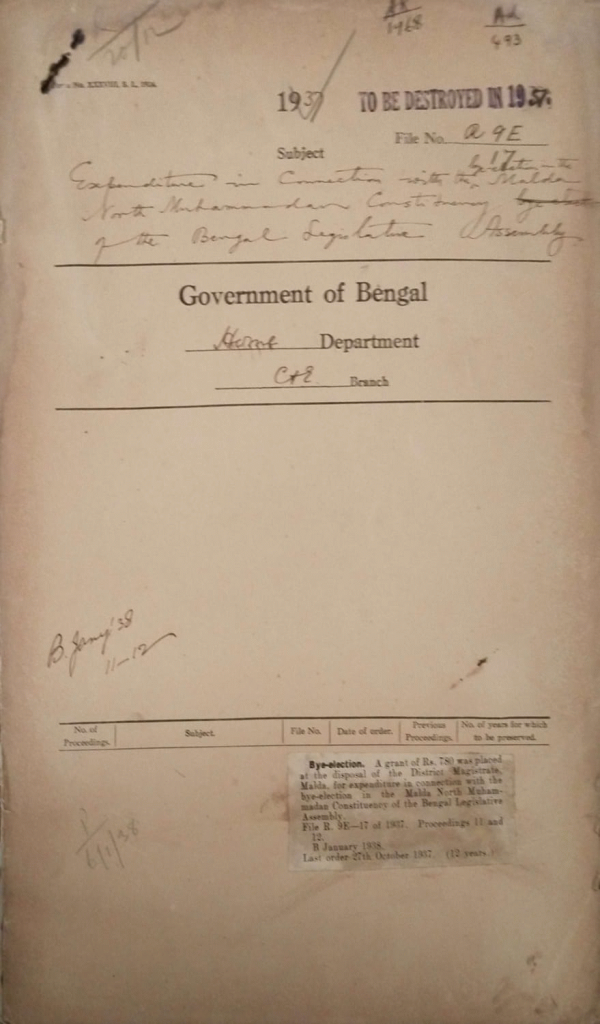 Expenditure in connection with the bye-election in the Malda North Muhammadan Constituency of the Bengal Legislative Assembly.