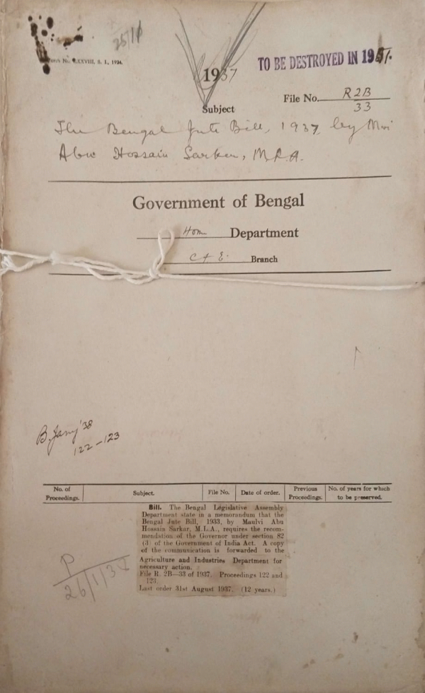 The Bengal Jute Bill, 1937 by Maulvi Abu Hossain Sarkar, M.L.A.