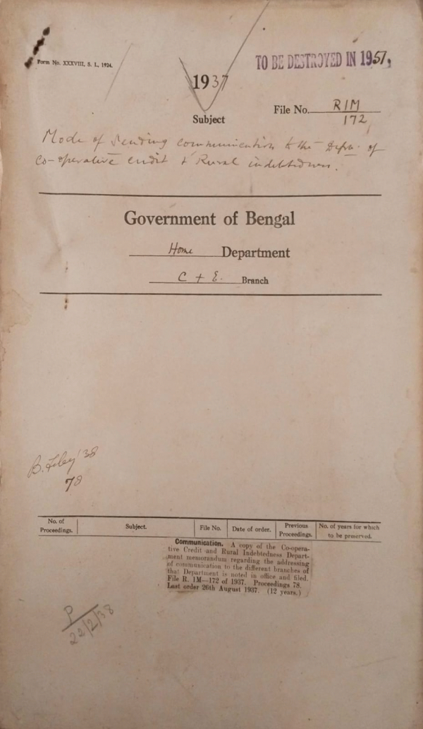 | Rack No. 08, Bundle No. 01, SI No. 34 The Bengal Jute Bill, 1937 by Maulvi Abu Hossain Sarkar, M.L.A. | Rack No. 08, Bundle No. 01, SI No. 35 Proposal prosecution of My Yusuf Mirza, M.L.A. U/S 1711 of the Indian Penal Code. | Rack No. 08, Bundle No. 01, SI No. 36 Tour of Ministers. | Rack No. 08, Bundle No. 01, SI No. 37 Mode of sending communication to the Department of Co-operative Credit and Rural Indebtedness. | Rack No. 08, Bundle No. 01, SI No. 38 Rules of Executive Business of other Provincial Govt. | Rack No. 08, Bundle No. 01, SI No. 39 Particulars of persons entitled to religious ministrations. | Rack No. 08, Bundle No. 01, SI No. 40 Changes in the Jurisdiction of Certain Munsif’s. |