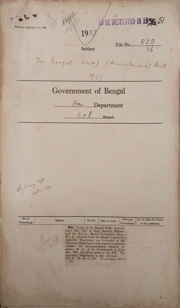 The Bengal Wakf (Amendment) Bill, 1937.