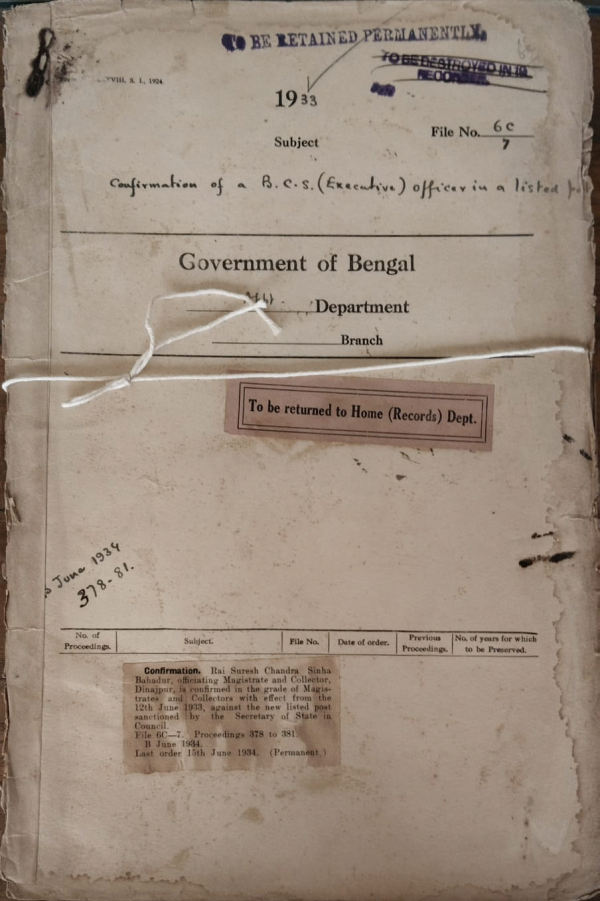 | Rack No. 2, Bundle No. 30, Sl No. 1758 Amendment of legislative Assembly Electoral Roils and Regulations. | Rack No. 2, Bundle No. 30, Sl No. 1759 Proposal that Treatment of railway receipts. | Rack No. 2, Bundle No. 30, Sl No. 1760 Storage of percussion Presses. | Rack No. 2, Bundle No. 6, Sl No. 301 Confirmation of a B.C.S. (Executive) officer in a listed port. | Rack No. 2, Bundle No. 6, Sl No. 302 Grant of permission to certain officers to retire from the service to Government | Rack No. 2, Bundle No. 6, Sl No. 303 Nomination of Maharaja Jagadish Nath Roy of Dinajpur to the Council of state. | Rack No. 2, Bundle No. 6, Sl No. 305 Installation of Electric lights and fans in the Church at Comilla. |