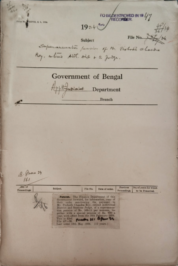 Superannuation pension of Mr. P.C. Roy, retired Additional District & Session Judge.