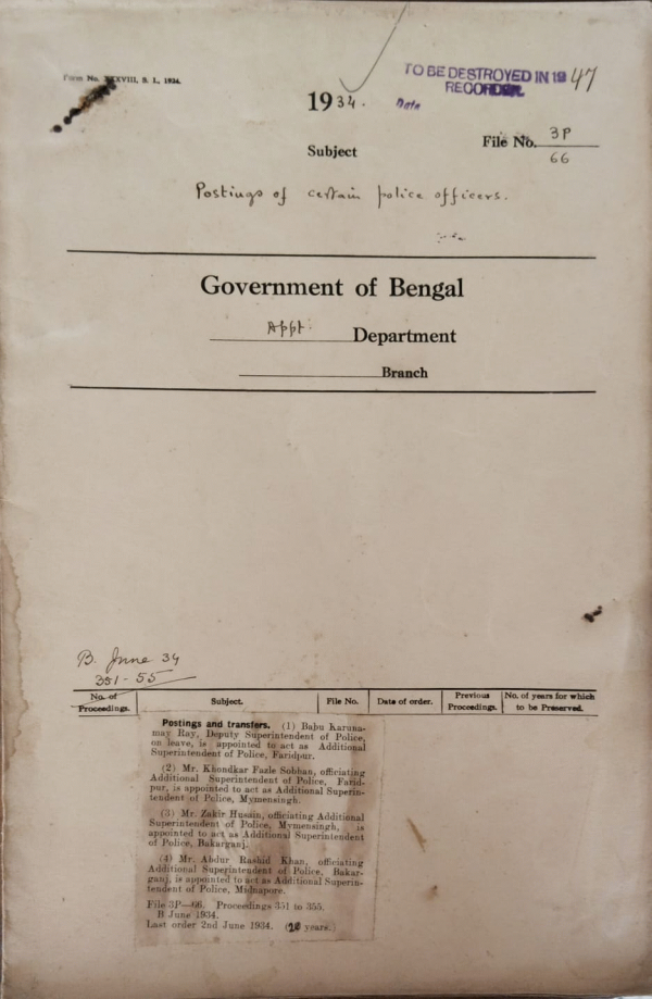 | Rack No. 2, Bundle No. 6, Sl No. 307 Purchase of the report of the Joint Committee on the Indian Constitutional Reform. | Rack No. 2, Bundle No. 6, Sl No. 311 Scale of pay for Estt. Menials. | Rack No. 2, Bundle No. 6, Sl No. 315 Question of selection of Mr. T.I. M.N. Chawdhury I.C.S. for the prison administration course held in England. | Rack No. 2, Bundle No. 6, Sl No. 317 Postings of certain police officers. | Rack No. 2, Bundle No. 6, Sl No. 330 Confirmation of Mr. O.M. Martin, I.C.S. as Secretaryto the Revenue Department in the Government of Bengal. | Rack No. 2, Bundle No. 6, Sl No. 335 Issue of a certificate that the transfer of Mr. Tarak Chandra Roy from Alipore to Bankura was made in the public interest. | Rack No. 2, Bundle No. 7, Sl No. 395 Provision of Text Books for use of I.C.S. Selected candidates. |