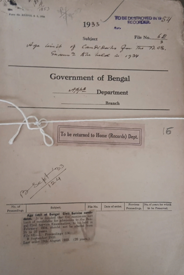 Age limit of candidates for the B.C.S. examination to be held in 1934.