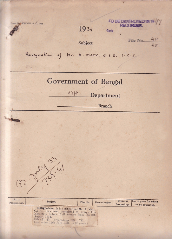 | Rack No. 02, Bundle No. 11, Sl No. 660 Representation of the retention of Arabic and person in the examinations for all India and Central Services. | Rack No. 02, Bundle No. 11, Sl No. 661 Amendment of the Public Service Commission’s (Condition of service) Rules 1936. | Rack No. 02, Bundle No. 11, Sl No. 662 Report of marriage of Mr. W.H. J. Christie I.C.S. on leave. | Rack No. 02, Bundle No. 11, Sl No. 663 Resignation of Mr. A. Marr. C.Z.E. | Rack No. 02, Bundle No. 11, Sl No. 664 Amendments of subsidiary rules regarding the grant of honoraria to an acceptance of fees by Government servants. | Rack No. 02, Bundle No. 11, Sl No. 665 Appellate powers Kalimuddin Ahmed, D. Magistrate Chittagong. | Rack No. 02, Bundle No. 11, Sl No. 666 Appointment of Maulvi. Saiyid Abu Nasiq, Muhammad Ali Akbar Sub deputy collector Midnapure. |