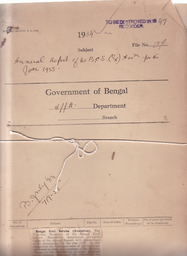 | Rack No. 02, Bundle No. 11, Sl No. 667 Grant of honoraria for the exam in council with the department exam held in May 1934. | Rack No. 02, Bundle No. 11, Sl No. 668 Grant of pension to Mr. J.E. Spenser I.P. Late A.I.G. of Police Bengal. | Rack No. 02, Bundle No. 11, Sl No. 669 Council question by Md. Fazhullah, appointment of Muhammadans. | Rack No. 02, Bundle No. 11, Sl No. 670 Annual report of B.C.S. Executive) for the year 1933. | Rack No. 02, Bundle No. 11, Sl No. 671 The payment of Mr. C.H. waters worth I.P. late a D.I.G. of Police. | Rack No. 02, Bundle No. 11, Sl No. 672 Procedure for the payment of gratuity for premature retirement admissible under the Bengal Service. | Rack No. 02, Bundle No. 11, Sl No. 673 Counting of service towards pension of Mr. W.N. Chaudhury, Head Clerk. |