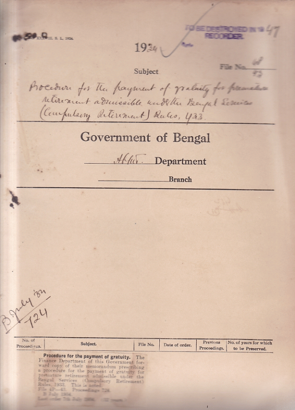 Procedure for the payment of gratuity for premature retirement admissible under the Bengal Service.