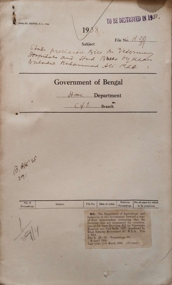 State provision Bill non-veterinary Hospital and Stud Bulls by Khan Bahadur Muhammand Ali, M.L.A.