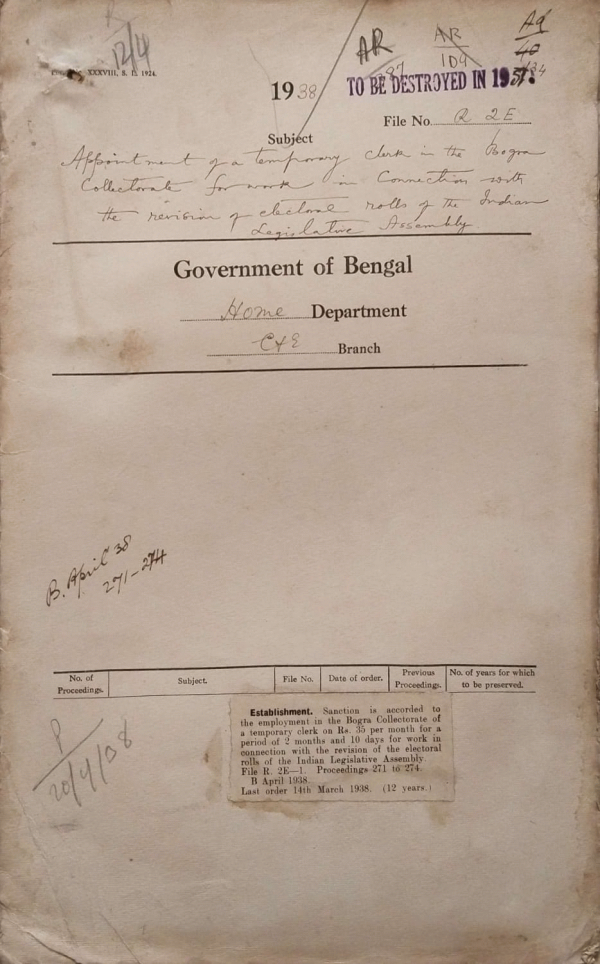 Appointment of a temporary clerk in the Bogra Collectorate for work in connection with the revision of electoral rolls of the Indian Legislative Assembly.