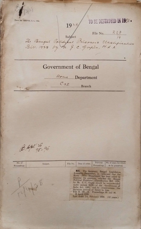The Bengal Political Prisoners Classification Bill, 1938 by Mr. J.C. Gupta, M.L.A.