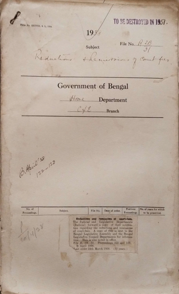 | Rack No. 08, Bundle No. 02, SI No. 107 Amendment to the Petroleum Rules, 1937. | Rack No. 08, Bundle No. 02, SI No. 108 The Bengal Political Prisoners Classification Bill, 1938 by Mr. J.C. Gupta, M.L.A. | Rack No. 08, Bundle No. 02, SI No. 109 Representation made by M.L.C.’S for an additional day for non-official Bills. | Rack No. 08, Bundle No. 02, SI No. 110 Reductions and remissions of court fees. | Rack No. 08, Bundle No. 02, SI No. 111 Rebate on fares of air journeys performed by Govt. Servants. | Rack No. 08, Bundle No. 02, SI No. 112 Purchase of a cycle for the use of the cycle peon of the Bengal Legislative Council Department. | Rack No. 08, Bundle No. 02, SI No. 113 Proposal for purchase of Pigeon hole racks for keeping letters and paper intended for the members of the Bengal Legislative Assembly. |