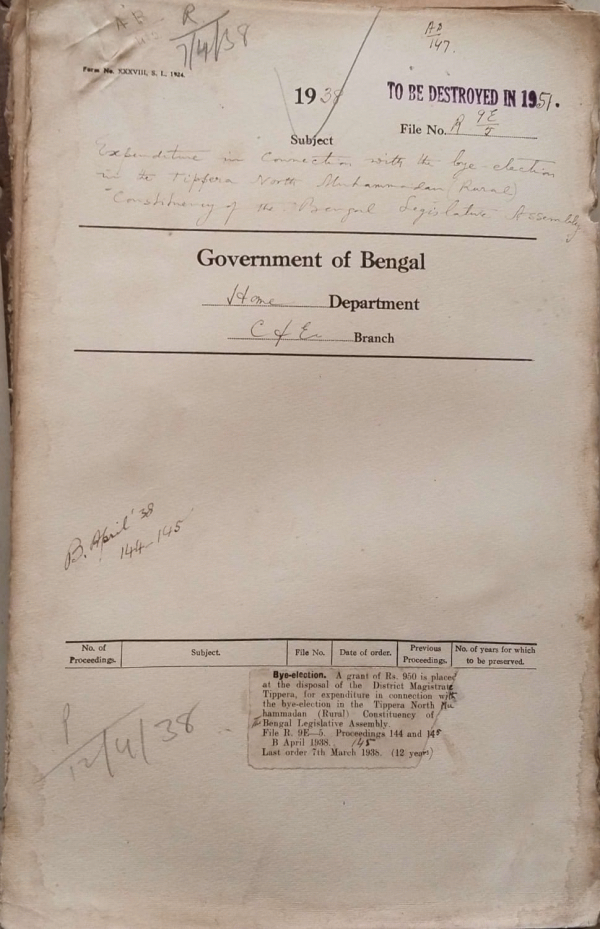 Expenditure in connection with the by-Collection in the Tippera Norh Muhammadan (Rural) Constituency of the Bengal Legislative Assembly