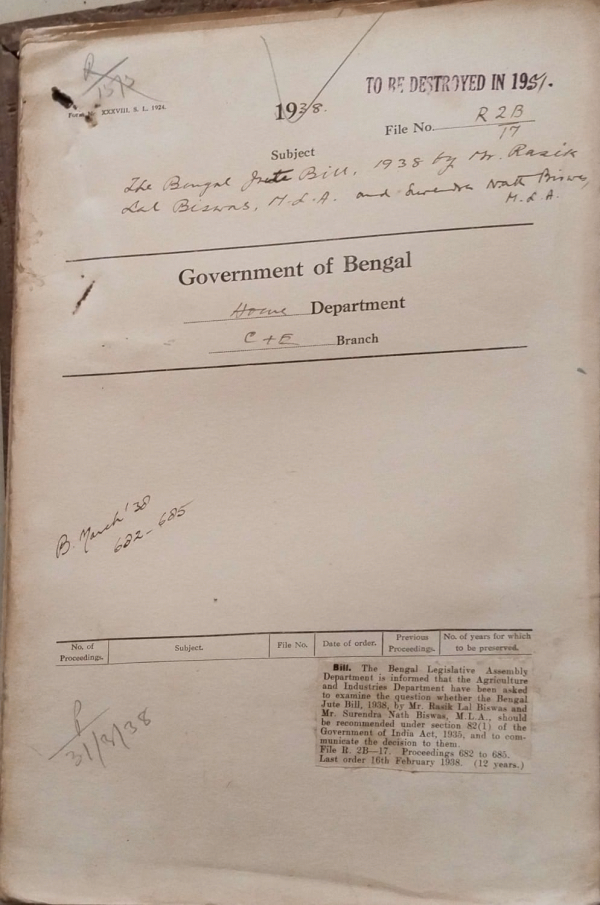 The Bengal Jute Bill, 1938 by Mr. Rasik Lal Biswas, M.L.A.