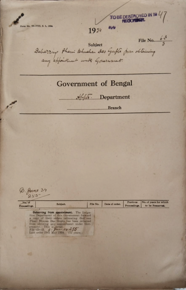 Debarring Phani Bhusan Das Gupta from obtaining any appointment under Government