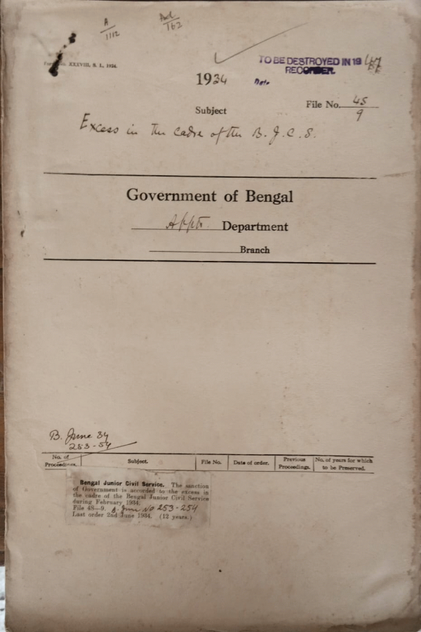 | Rack No. 2, Bundle No. 6, Sl No. 342 Amendment to instructions regarding statements for the guidance of stamp Inspectors. | Rack No. 2, Bundle No. 6, Sl No. 343 Extension of probationary period of Mr. Sudhir Kumar Sinhai I. P., Assistant, Superintendent of Police. | Rack No. 2, Bundle No. 6, Sl No. 344 Debarring Phani Bhusan Das Gupta from obtaining any appointment under Government | Rack No. 2, Bundle No. 6, Sl No. 345 Excess in the Cadre of the B.I.C.S. | Rack No. 2, Bundle No. 6, Sl No. 346 Enquiry regarding the date of birth of Babu J.C. Sengupta a Candidate for the next I.P. | Rack No. 2, Bundle No. 6, Sl No. 347 Appointment of the Revd. Joseph Kirkpatrick to be a Chaplain on probation on the Indian Eccl. Estt. | Rack No. 2, Bundle No. 6, Sl No. 348 Final withdrawal of the money at the Credit of Mr. T. Basu, Additional District & Session Judges Bakarganj in the G.P. Fund. |