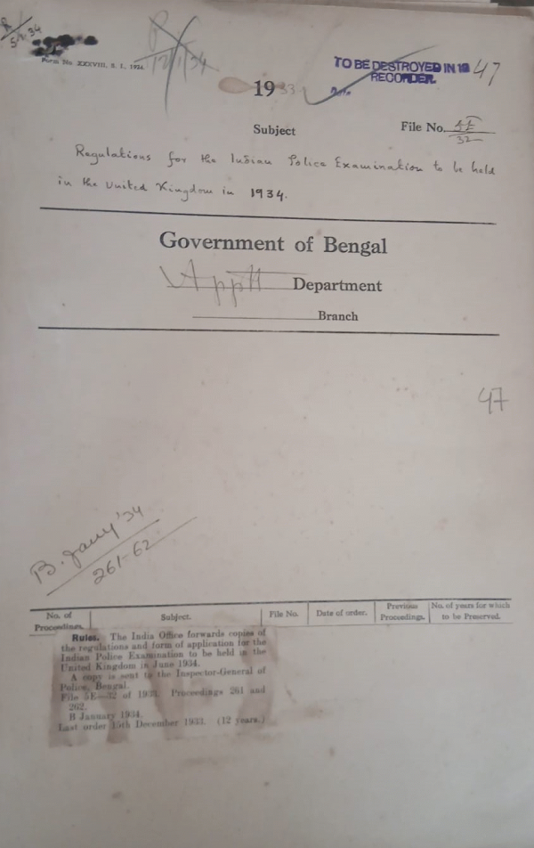 | Rack No. 2, Bundle No. 01, Sl No. 44 Application of some amendments to the C.S. Regulations to service, in respect of which is delegated to the local Governmentin the Said rules. | Rack No. 2, Bundle No. 01, Sl No. 45 Extension of leave of Babu Bijoy Krishna Sen, Sub-Deputy. Collector. | Rack No. 2, Bundle No. 01, Sl No. 46 Regulation for the I.C.S. Exam in London in 1934. | Rack No. 2, Bundle No. 01, Sl No. 47 Regulations for the Indian Police Exam to be held in the U.K. in 1934. | Rack No. 2, Bundle No. 01, Sl No. 48 Supply of information regarding appointment to the Provincial Services. | Rack No. 2, Bundle No. 01, Sl No. 49 Correct practice and procedure in giving notice of motions for reference of GovernmentBills to select committees. | Rack No. 2, Bundle No. 01, Sl No. 50 Revision of the mortgage bond from for motor car advance. |