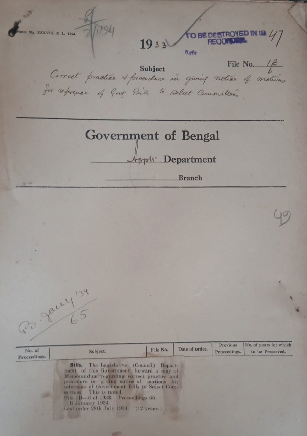 | Rack No. 2, Bundle No. 01, Sl No. 46 Regulation for the I.C.S. Exam in London in 1934. | Rack No. 2, Bundle No. 01, Sl No. 47 Regulations for the Indian Police Exam to be held in the U.K. in 1934. | Rack No. 2, Bundle No. 01, Sl No. 48 Supply of information regarding appointment to the Provincial Services. | Rack No. 2, Bundle No. 01, Sl No. 49 Correct practice and procedure in giving notice of motions for reference of GovernmentBills to select committees. | Rack No. 2, Bundle No. 01, Sl No. 50 Revision of the mortgage bond from for motor car advance. | Rack No. 2, Bundle No. 01, Sl No. 51 Powers of Babu Gour Ch. Mandal, Deputy, Magistrate, Bogra invested with summary powers. | Rack No. 2, Bundle No. 01, Sl No. 52 Remission of rent for the D.S.P's residence of Faridpur from the 24.12.32 to 21.3.33 as the then A.S.P. to whom the residence was allotted put up with S.P. |