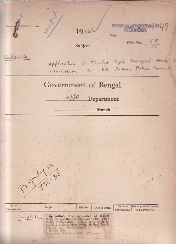 The application of Maulvi Saiyid Serajal Haq admission to the Indian Police Examination