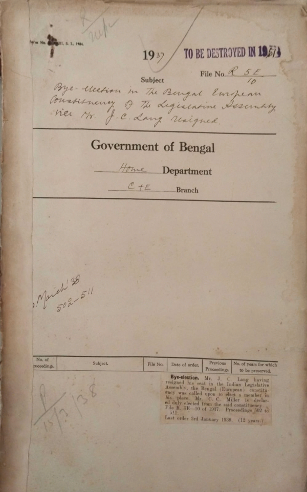 Bye-election in the Bengal European Constituency of the Legislation Assembly Vice Mr. J.C. Lang resigned.