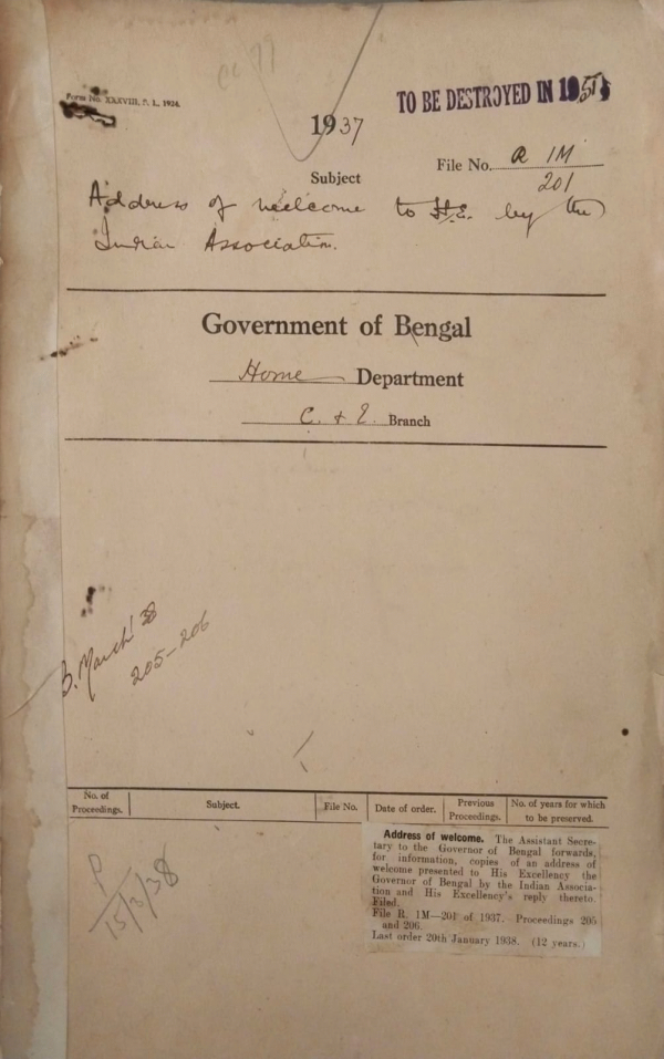 | Rack No. 08, Bundle No. 03, SI No. 135 Revision of Babu Narayan Chandra Sen, a Stenographer of the Election Tribunal. | Rack No. 08, Bundle No. 03, SI No. 136 Revision of electoral rolls of the Indian Legislative Assembly. | Rack No. 08, Bundle No. 03, SI No. 137 The Bengal Jute Bill, 1937 by Mr. Surendra Nath Biswas M.L.A. | Rack No. 08, Bundle No. 03, SI No. 138 Address of welcome to H/E by the Indian Association. | Rack No. 08, Bundle No. 03, SI No. 139 Vernacular translation of the Bengal Ministers Sallies act 1937 and the Bengal Legislative Chambers Act, 1937. | Rack No. 08, Bundle No. 03, SI No. 140 Purchase of Cain articles of furniture for the use of the staff of the Bengal Legislative Assembly Department. | Rack No. 08, Bundle No. 03, SI No. 141 The Bengal Tenancy Bills, 1937 by Mr. P. Benerji M.L.A. |
