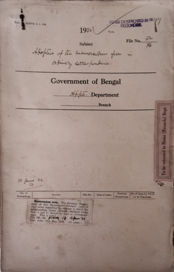 | Rack No. 2, Bundle No. 7, Sl No. 377 Posting of Deputy Magistrate and Deputy Collector (April, 1934). | Rack No. 2, Bundle No. 7, Sl No. 378 Supply of vernacular newspapers for the use of the Civil Service Commission London. | Rack No. 2, Bundle No. 7, Sl No. 379 Representation of Indian commerce and Industry in the reformed Bengal Legislative council. | Rack No. 2, Bundle No. 7, Sl No. 380 Adoption of the memorandum form in ordinary correspondence. | Rack No. 2, Bundle No. 7, Sl No. 381 Provision of Articles for termination of the agreement on contract for non-permanent service. | Rack No. 2, Bundle No. 7, Sl No. 382 Grant of honorarium to certain assistants of the C.E. Committee for posting correction slips to the books intended for Department Examination | Rack No. 2, Bundle No. 7, Sl No. 383 Postings of certain police officers, (Posting of Mr. Sudhir Kumar Sinha and Fazlur Rahman Khondkar). |