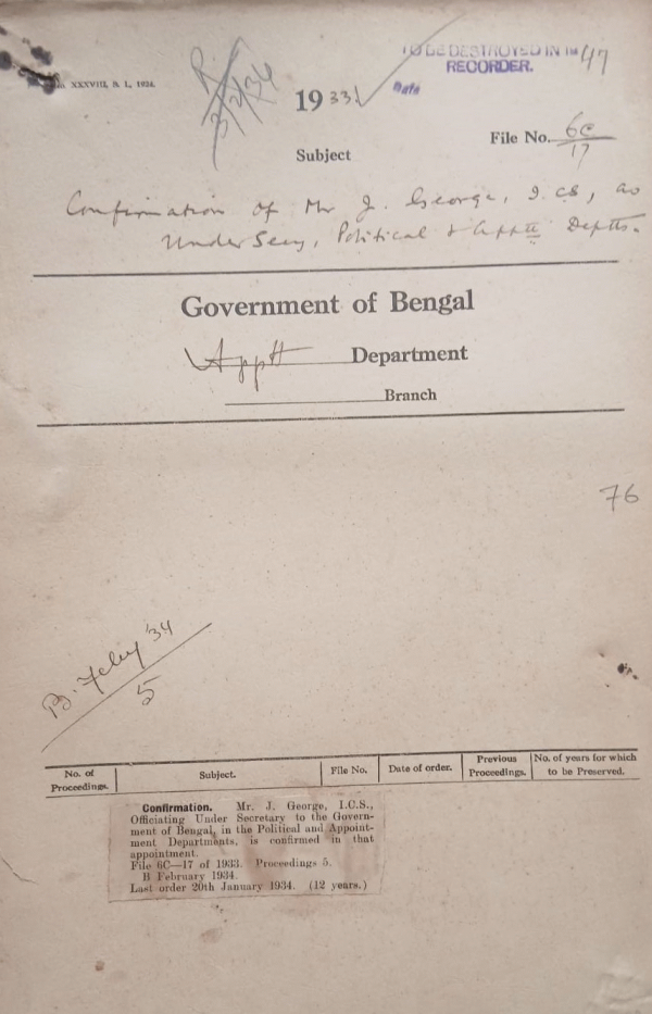Confirmation of Mr. J. George I.C.S. as undersecretary political and Appointment Department.