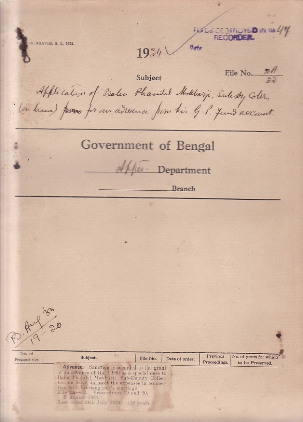 Grant of an advance of Rs. 1980 as a special case to Babu Phonilal Mukharji S.D. Collector.